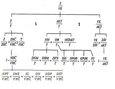 Ukazovateľ rentability vlastného kapitálu je jeden z najlepších syntetických ukazovateľov, ktorý v sebe spája pestré vnútorné väzby. Rozklad ukazovateľa vedie k takejto štruktúre:
